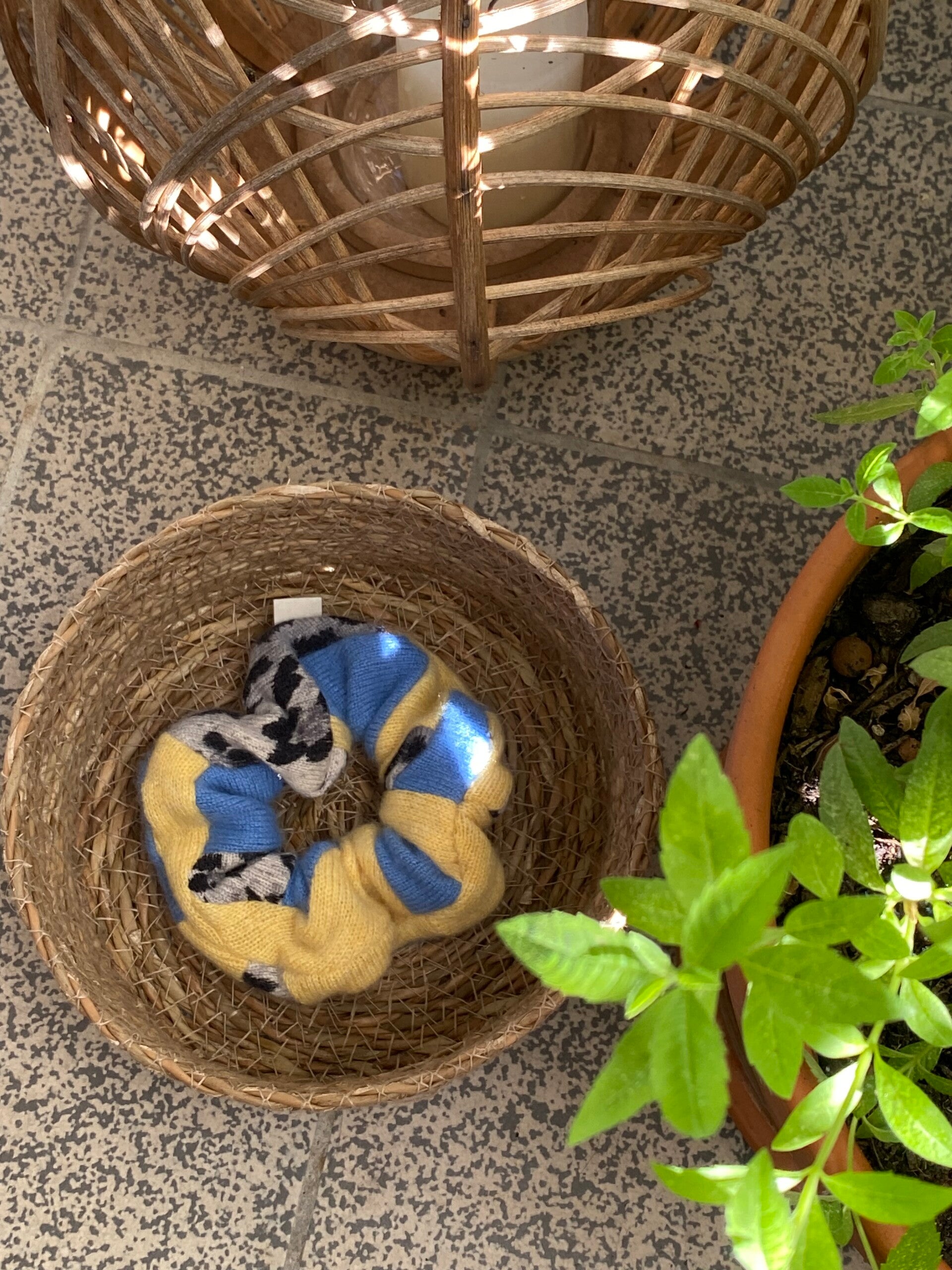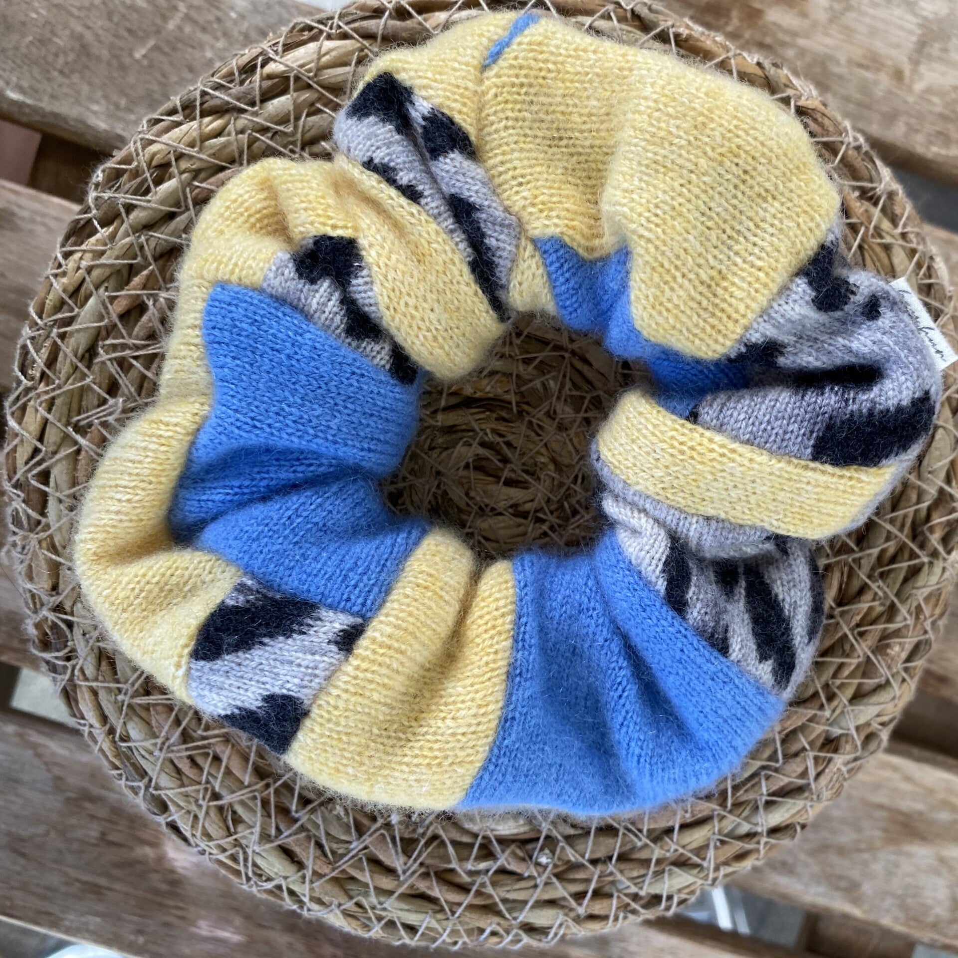 Kaschmir Scrunchie Patchwork Butteryellow-Blau